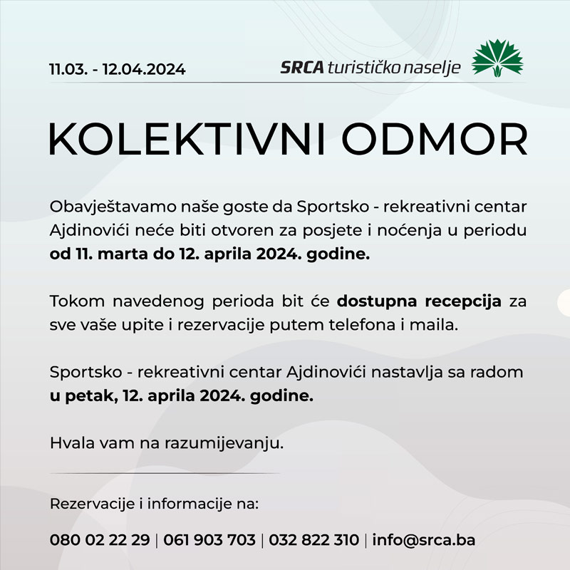 KOLEKTIVNI GODIŠNJI ODMOR: 11. MART – 12. APRIL